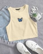 التصميم: القطعة بتعتمد على “الريب” (Ribbed fabric) اللي بيدي ملمس وشكل غني جداً، مع قصة الـ Scoop neck اللي بتبرز منطقة الرقبة بشكل راقي.