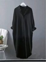 “قطعة واحدة، بـ 100 طريقة للتنسيق! سواء اعتمدتِه كدريس، أو فتحتِه ككيمونو فوق تيشيرت وجينز، هذا الشيميز الطويل سيغير مفهومك عن الراحة والتميز.