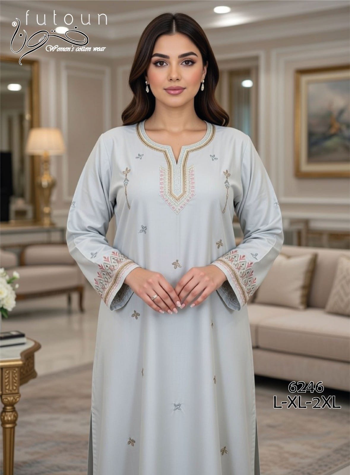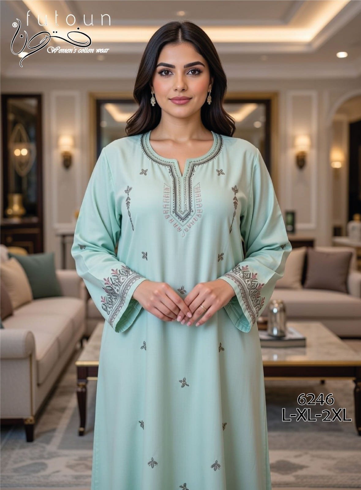 الخامة: مراسي قطن (مش الشفاف الشعبي)، ناعمة جداً وباردة.