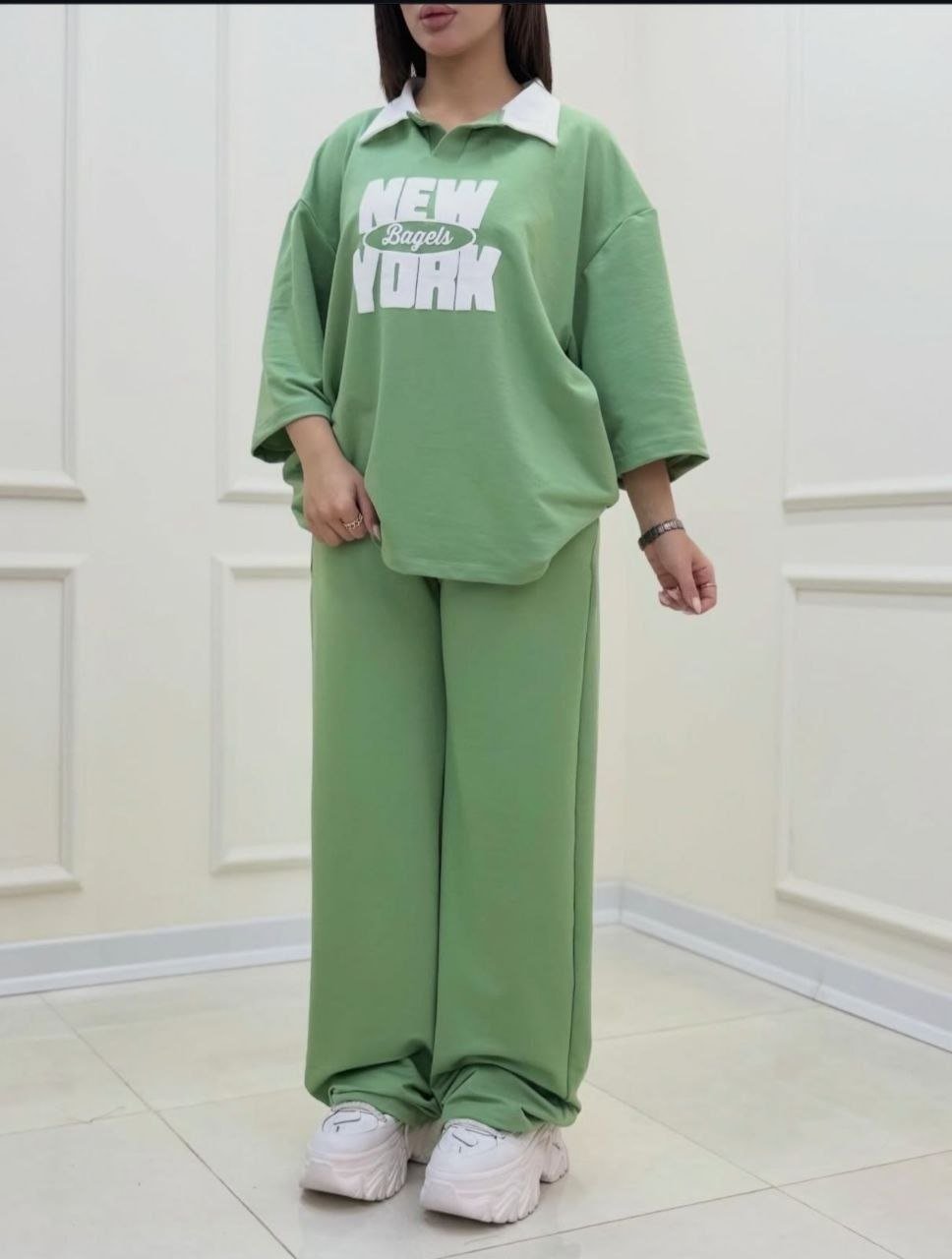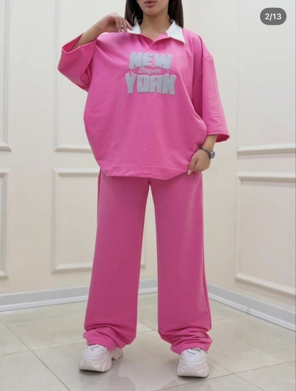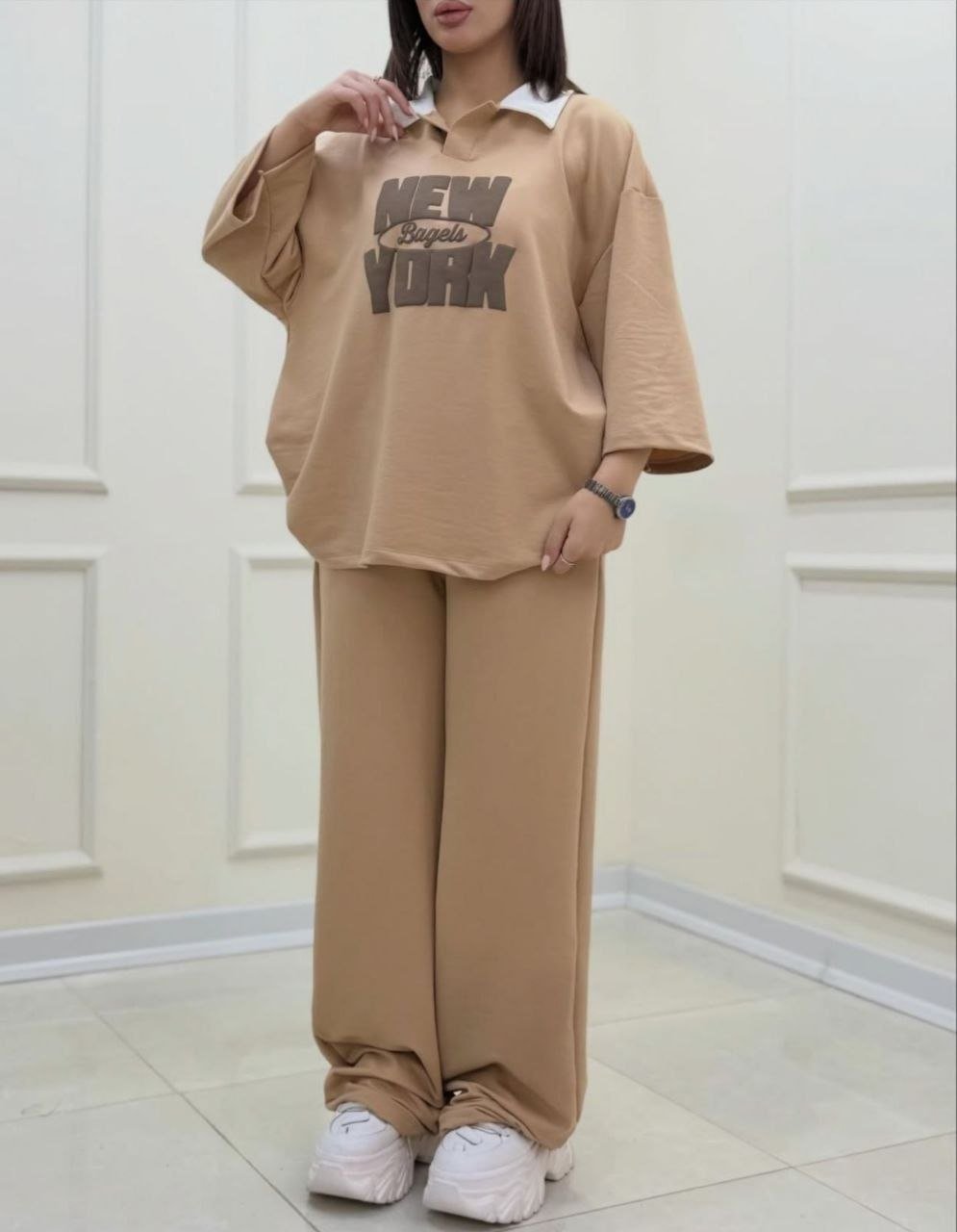 سيت كاجوال أوفر سايز (New York) بخامة سمر ميلتون صيفي ممتازة. طقم قطعتين عملي وشيك جداً، بيستهدف شريحة الشباب والجامعات بقوة. بضاعة (Fast Fashion) سريعة الدوران، هتطير من على الستاند وتضمنلك أرباح يومية ممتازة